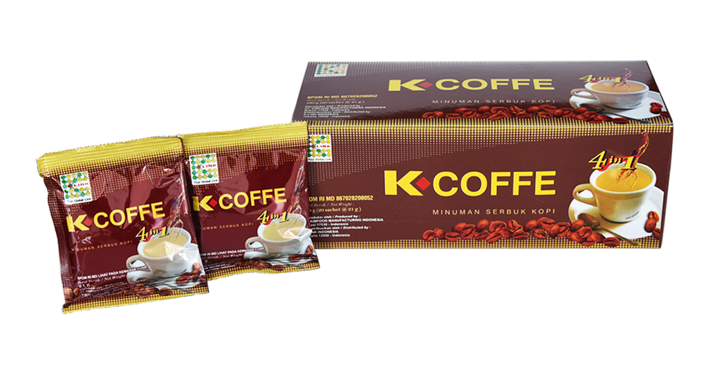 K-Coffe (4 in 1 atau 5 in 1) adalah minuman serbuk kopi instan yang terbuat dari biji Kopi Arabica berkualitas dan diperkaya dengan bahan herbal untuk kesehatan.